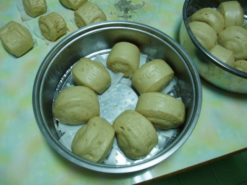 其實,不須要放這麼擠,因為第一籠的失敗,媽媽以為蒸起來會很小,結果第二籠感覺太擠了。