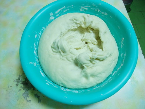這次可能酵母粉放的不夠多,所以醒了3小時,不然今天很熱。